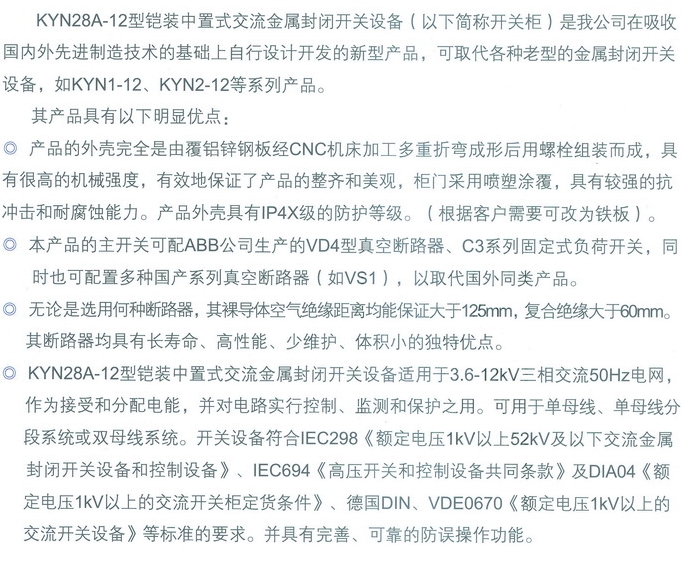 KYN28A-12移開式金屬封閉開關(guān)設(shè)備