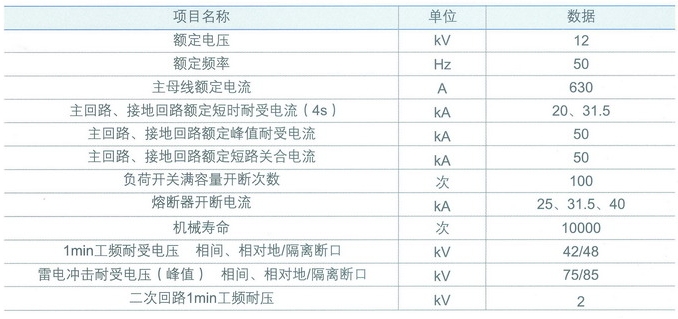 主要技術(shù)參數(shù)