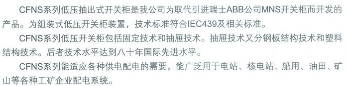 CFNS(MNS)型低壓抽出式開關(guān)柜